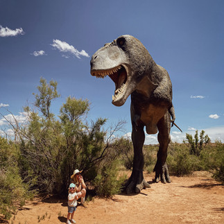 Ici, les dinosaures grandeur nature reprennent vie au cœur du désert de l’Utah, pour le plus grand bonheur de Enola. 🦕🦖